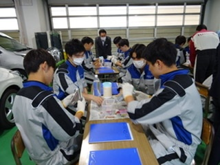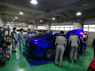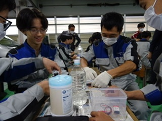 最新技術や最先端の情報を分かりやすく丁寧に教えていただきました!!!実験をまじえての楽しい実習!!!「水素自動車」の仕組みについてでは学生も興味津々★☆