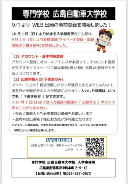 10月1日(日)より始まる入学願書受付に先駆け、9月1日(金)より事前登録(マイページ登録・出願情報の下書き保存)を開始しました。
