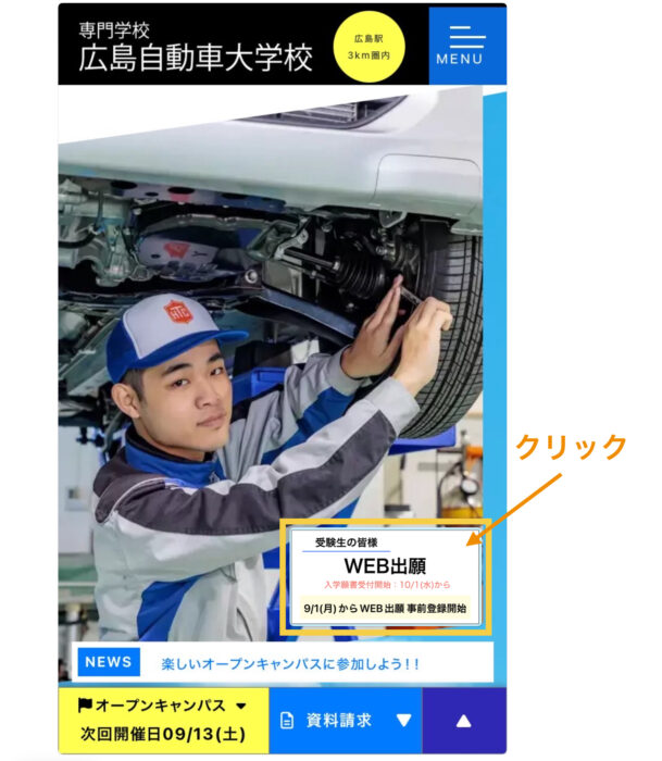学校ホームページの「WEB出願」のバナーをクリックし、WEB出願サイトよりご登録ください(≧∇≦)★☆