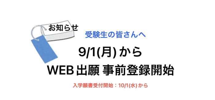 【2026年度入学者】9/1 (月)より WEB 出願の事前登録を開始します!